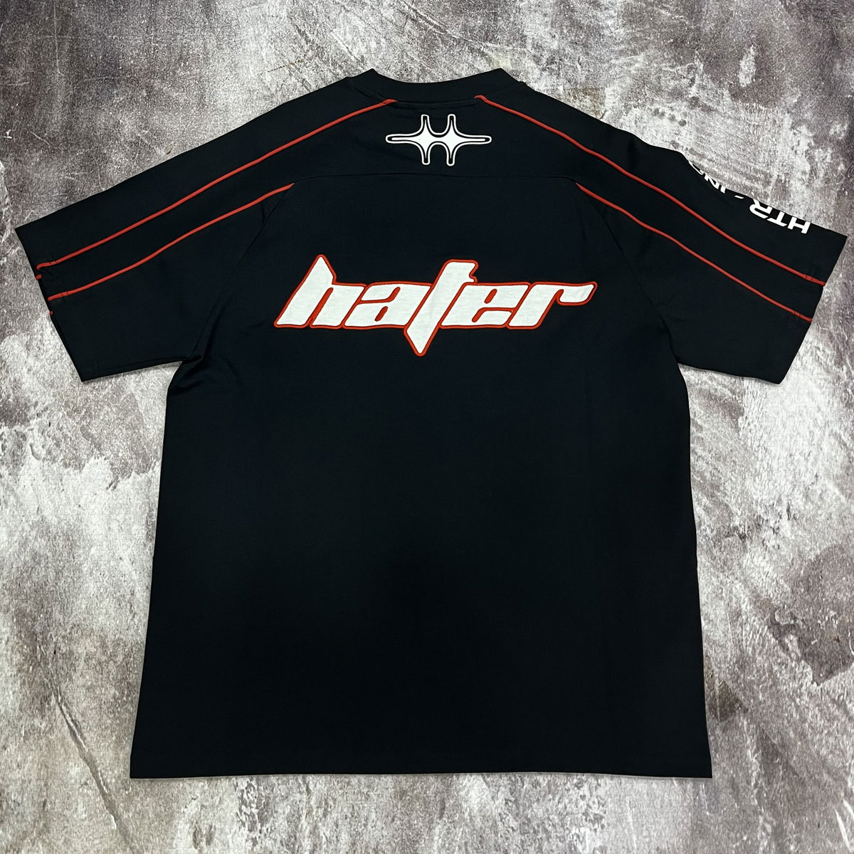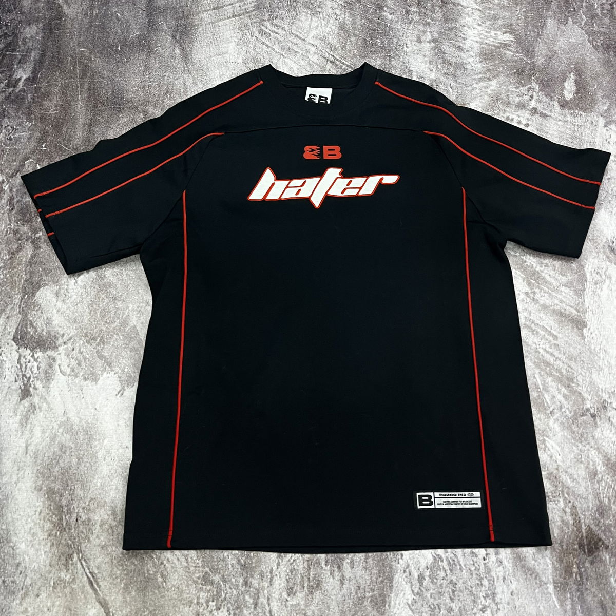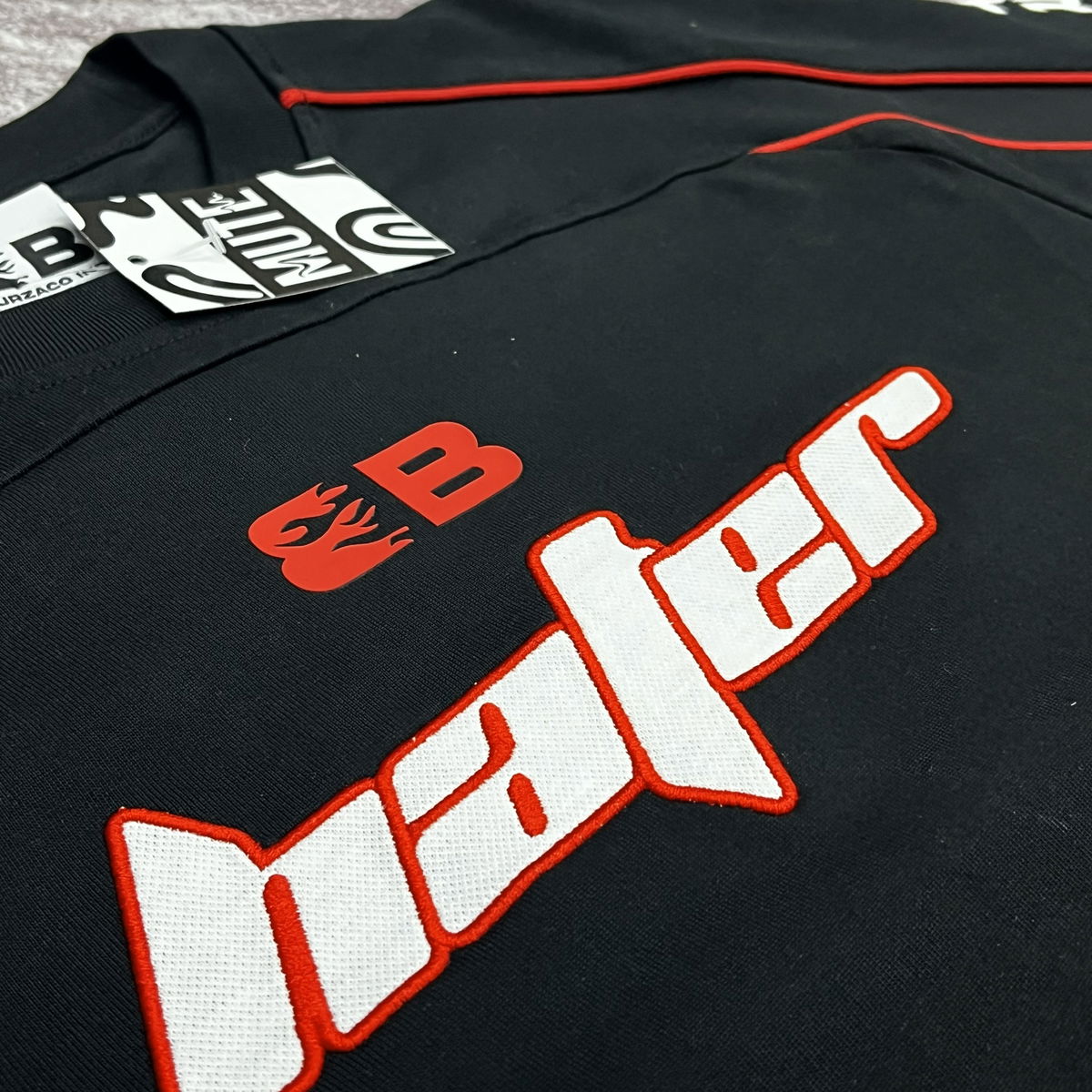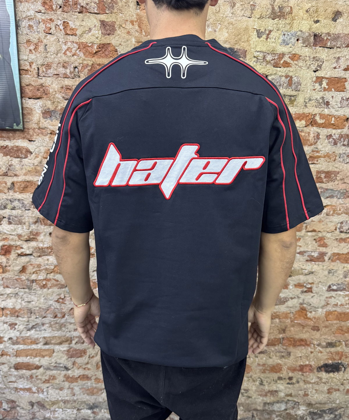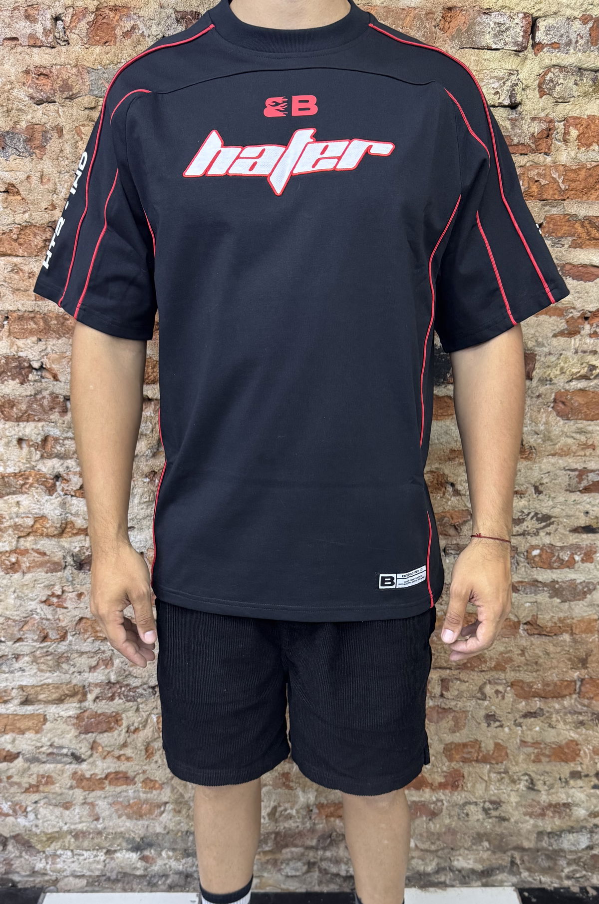 El modelo usa Talle L (distinto diseño de remera pero mismo corte) y mide 1.80mts