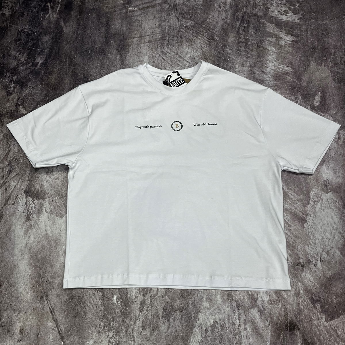 El modelo usa Talle L (distinto diseño de remera pero mismo corte) y mide 1.80mts